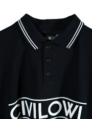 BLACK CIVILOWL RUNNING WHITE FONT COLLAR T SHIRT