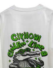 WHITE CHILLING CROCODILE OVERSIZED T SHIRT